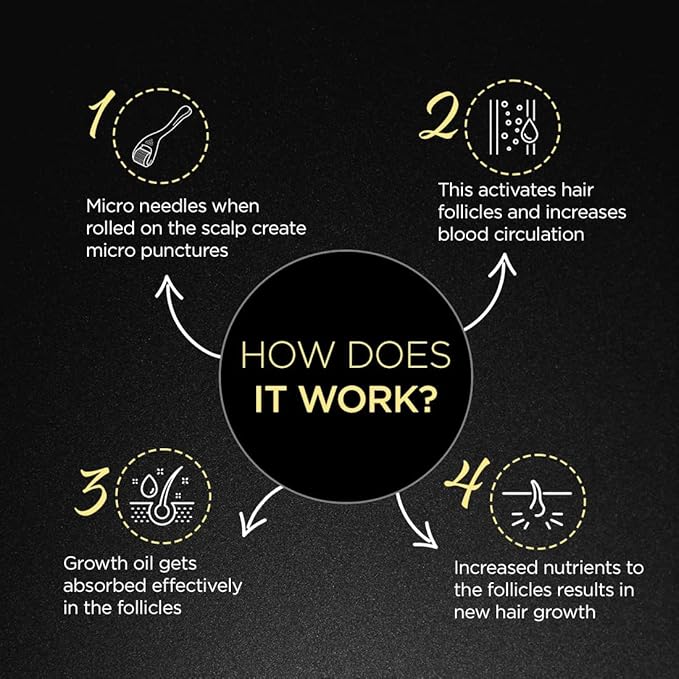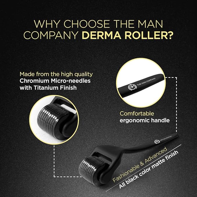 the Man Company Derma Roller for Men 540 (0.5 mm) Chromium micro-needles with Titanium Finish for Beard & Hair Growth, Black